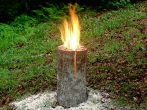 Also known as a “Swedish Torch” or “Swedish Candle,” an autonomous campfire method using a single log, which burns vertically, providing a flat surface for cooking, and requires less fuel than traditional campfires.